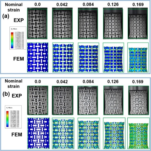 图6 3D管状超材料和2D板式超材料在0.2应变下的变形行为比较