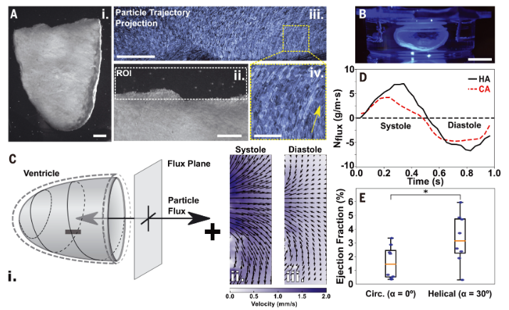 心脏肌肉组织内的螺旋排列对于实现生理性泵送效率至关重要。然而,测试这种可能性是困难的,因为使用目前的技术再现心脏肌肉组织的精细空间特征和复杂结构是具有挑战性的。